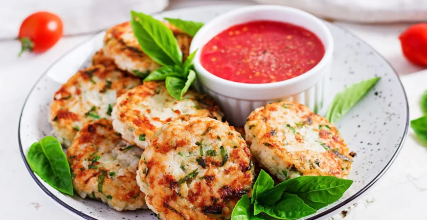 Craving hash browns but watching your carbs? These 5-ingredient Cauliflower Fritters are golden, crispy, and ready in 20 minutes. Served with a side of marinara.